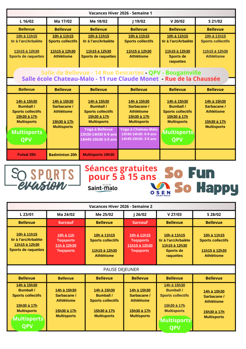 Le programme de ces 2 semaines de vacances dans notre planning d'activités des vacances de février